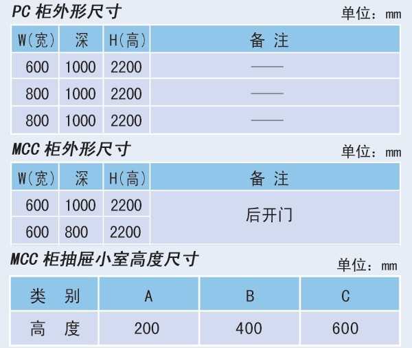 1、抽屜層高的模數(shù)為200mm。分為1/2單元、1單元、1.5單元、2單元、3單元五個尺寸系列。單元回路額定電流630A