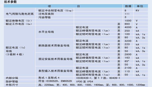 3、三級和四級水平母線系統其額定電流可至4000A;
