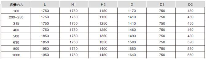 注:a.根據用戶要求變壓器的高壓分接范圍可設計為±2×2.5%; b.根據用戶要求變壓器的低壓可設計為0.69KV。